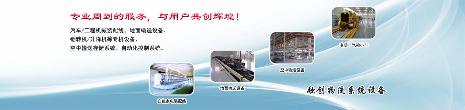 無(wú)錫市融創(chuàng)物流系統(tǒng)設(shè)備有限公司專業(yè)從事物流輸送設(shè)備、各類裝配流水線設(shè)備、各類生產(chǎn)非標(biāo)專機(jī)設(shè)備和自動(dòng)化控制系統(tǒng)的專業(yè)生產(chǎn)企業(yè)。廣泛應(yīng)用于轎車(chē)、卡車(chē)、客車(chē)、各類工程機(jī)械、發(fā)動(dòng)機(jī)、車(chē)橋、農(nóng)業(yè)機(jī)械、郵政、家電等行業(yè) ...... >> more >>